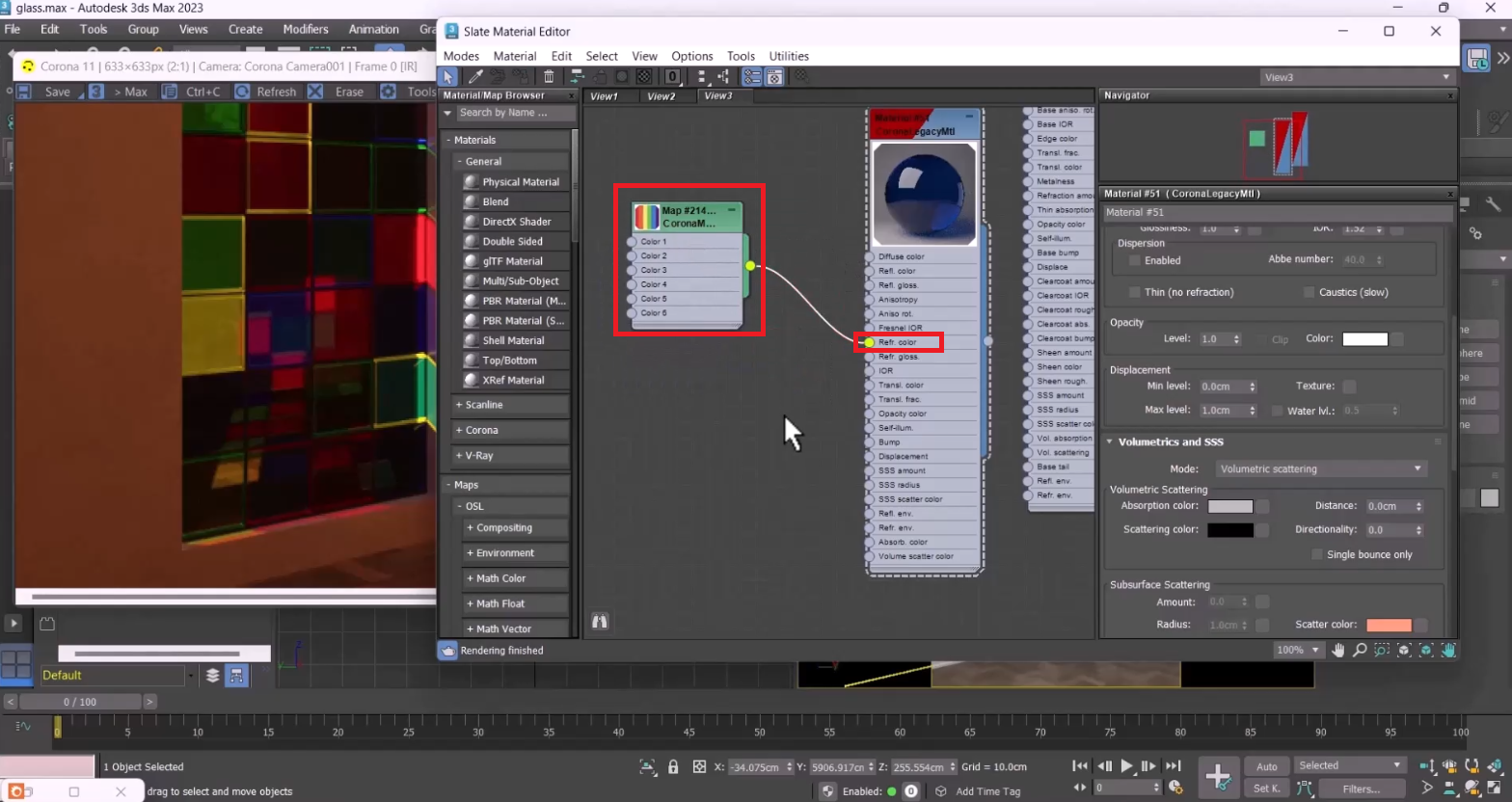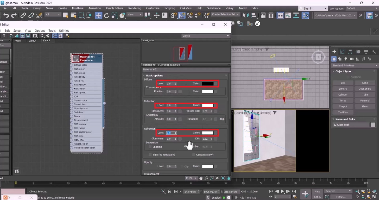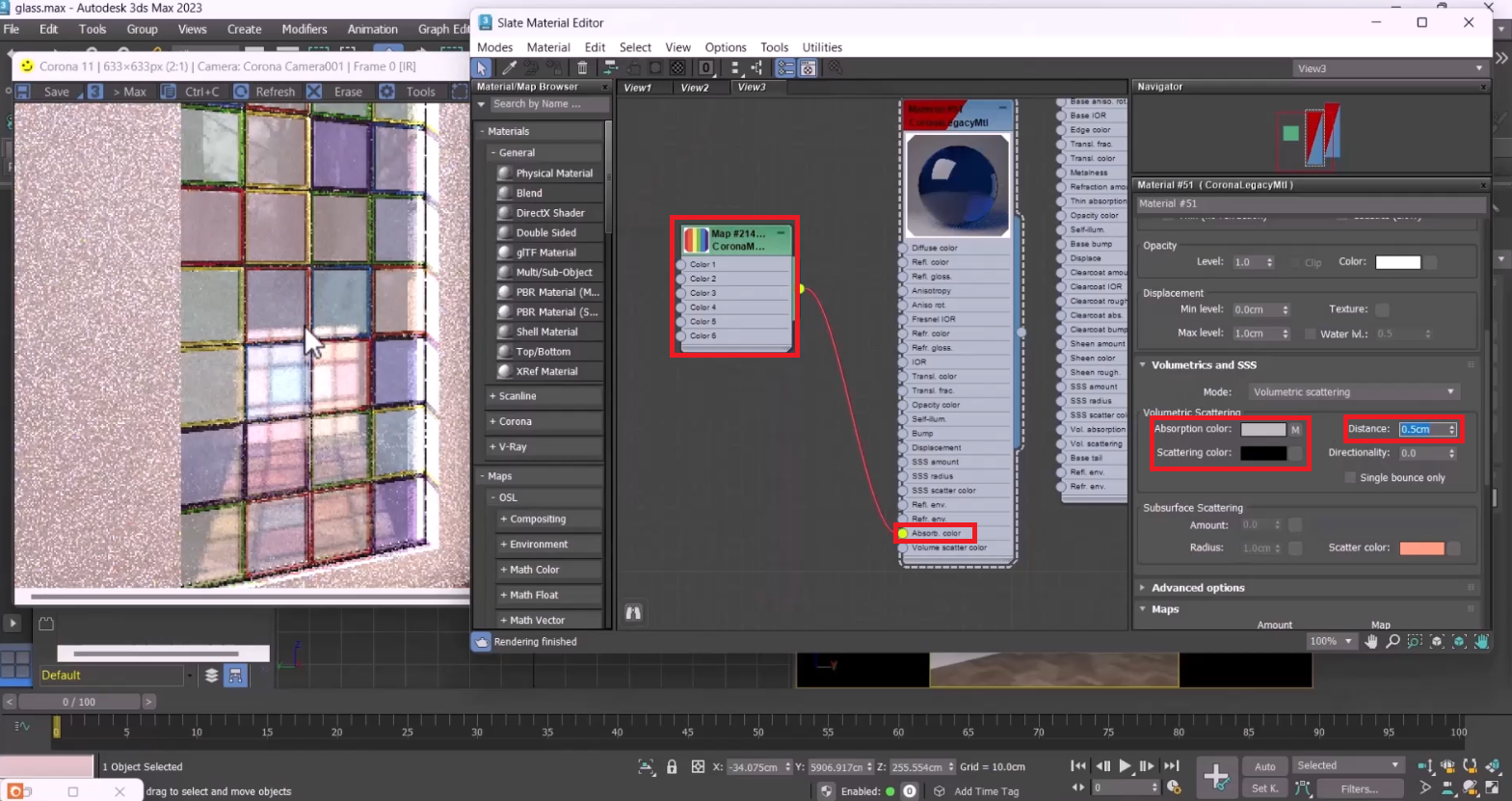 آموزش ساخت متریال شیشه و شیشه رنگی در کرونا رندر