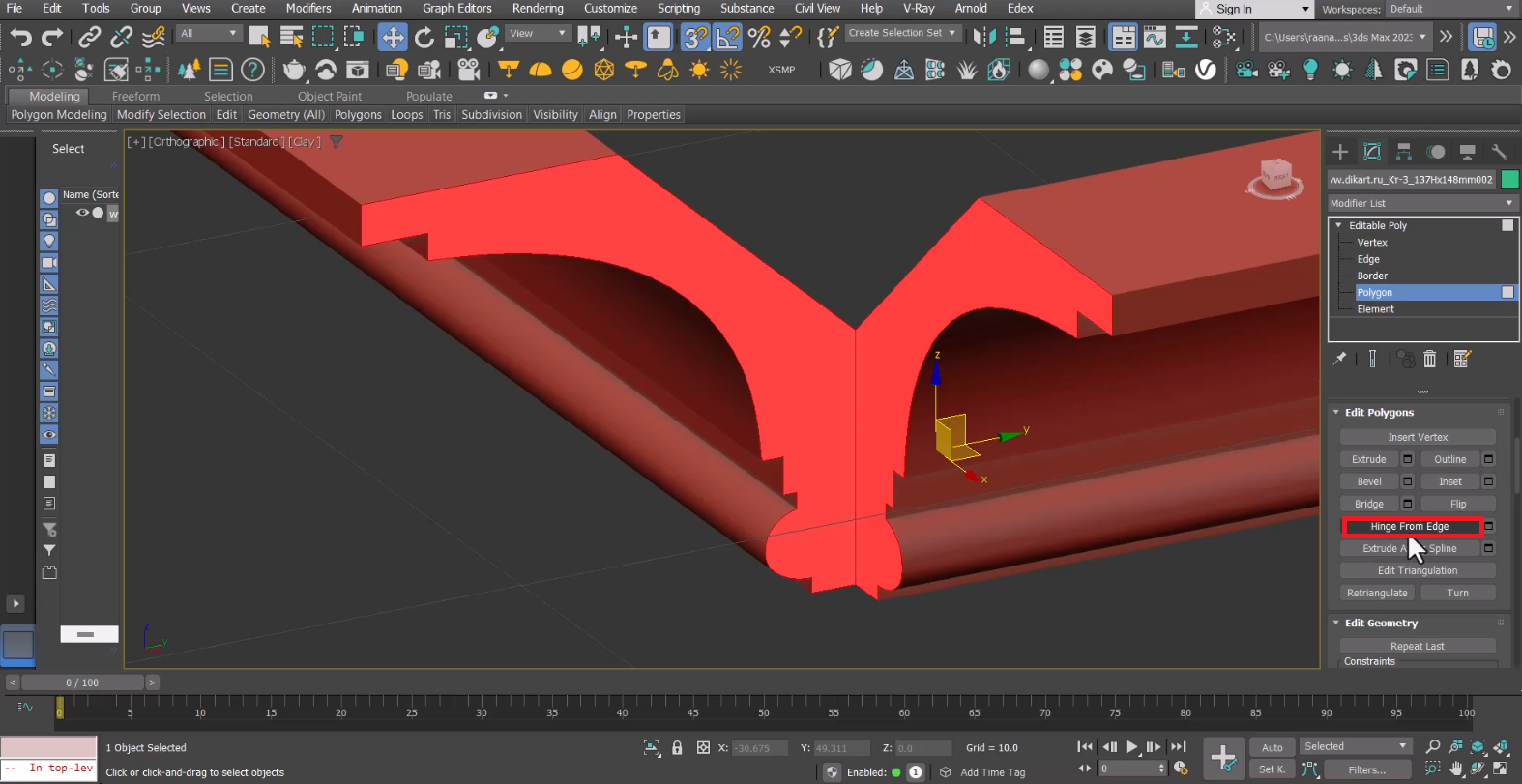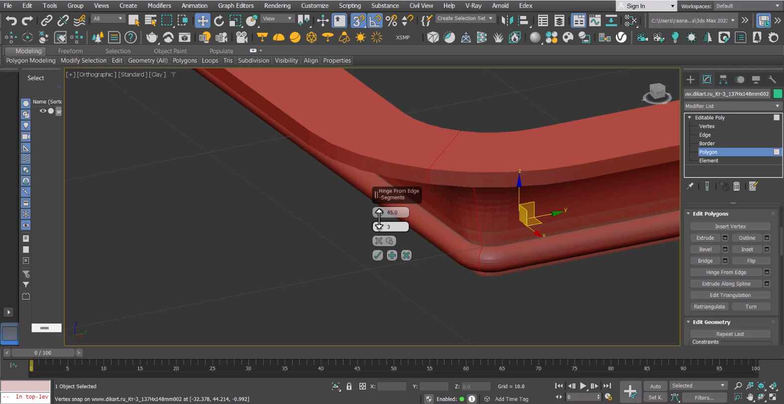از قسمت Settings روی گزینهی اول که مربوط به همترازی یا Match هست (Hinge from edge) کلیک میکنم و Edge وسط رو انتخاب میکنم تا بتونم به کار زاویه بدم تا زمانی که این دو پلیگان به هم برسند.