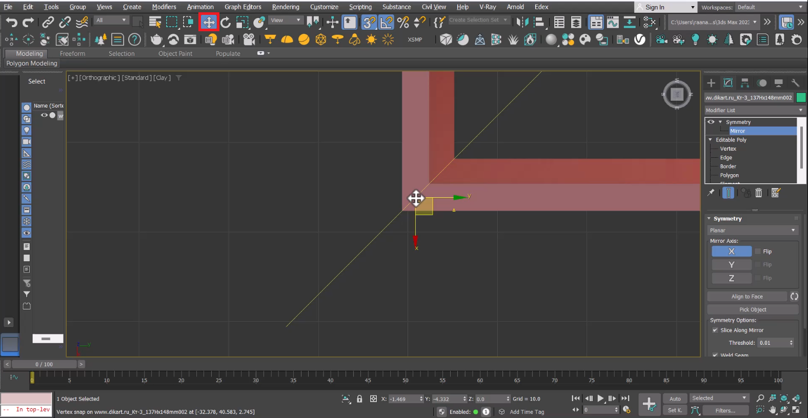 یه روش دیگه برای ایجاد اتصال بین دو بخش در زاویه ۹۰ درجه، استفاده از ابزار Symmetry هست.