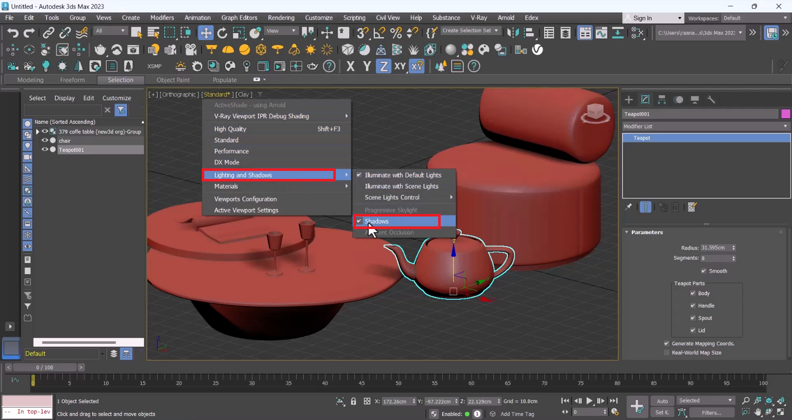آموزش غیرفعال کردن سایهها در ویوپورت نرمافزار 3ds Max