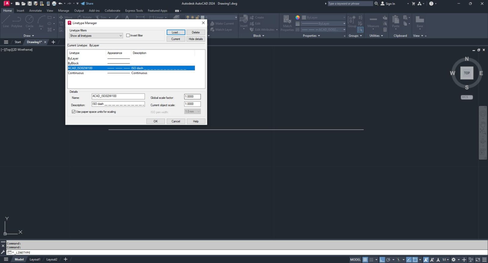 دستور Linetype را اجرا کنید یا از بخش تنظیمات مربوط به Line Type وارد شوید.