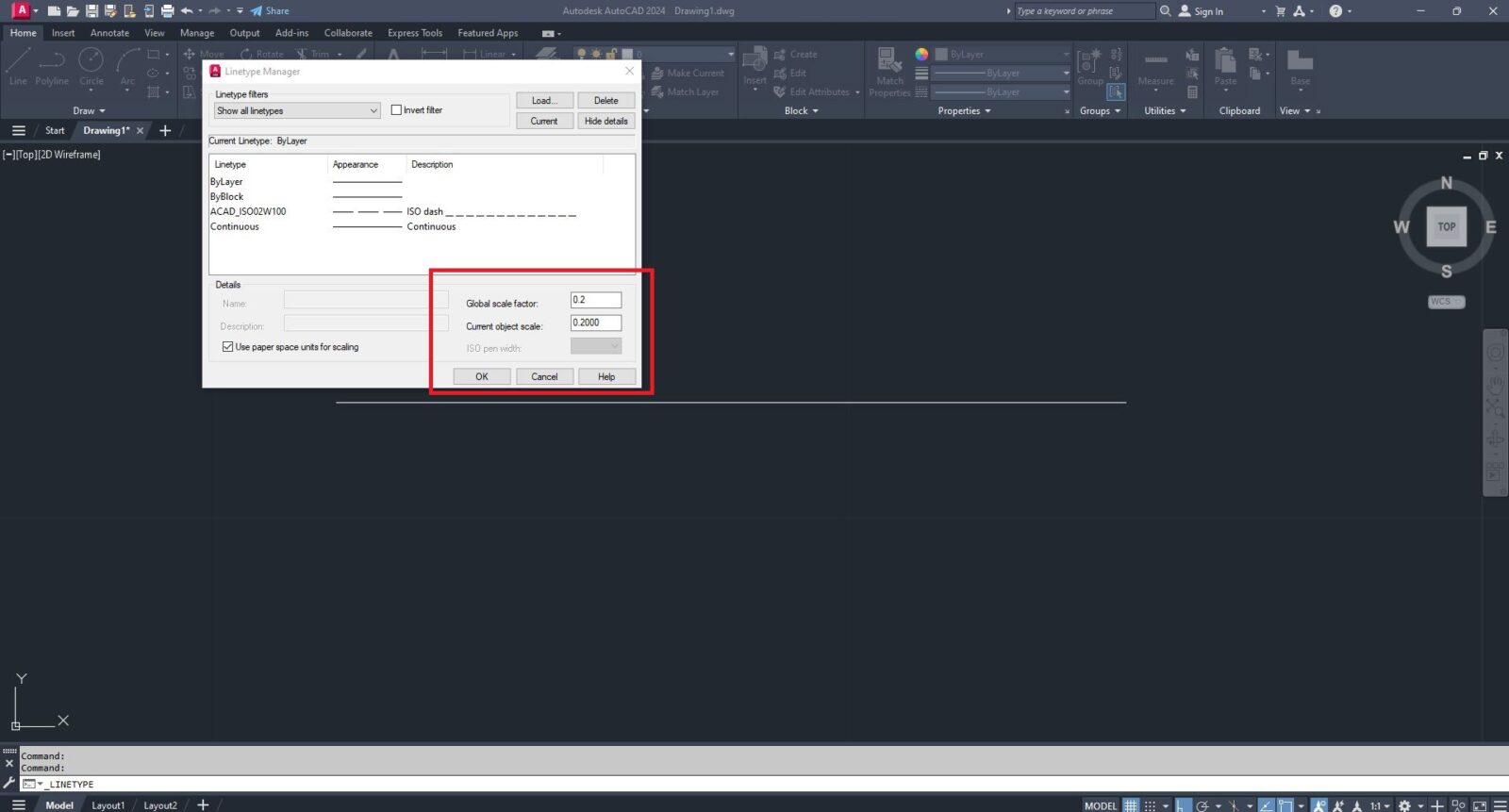 چون بیشتر هنرجوها در ابتدای یادگیری اتوکد فقط نوع خط را تغییر میدهند، اما به مقیاس نمایش توجه نمیکنند.